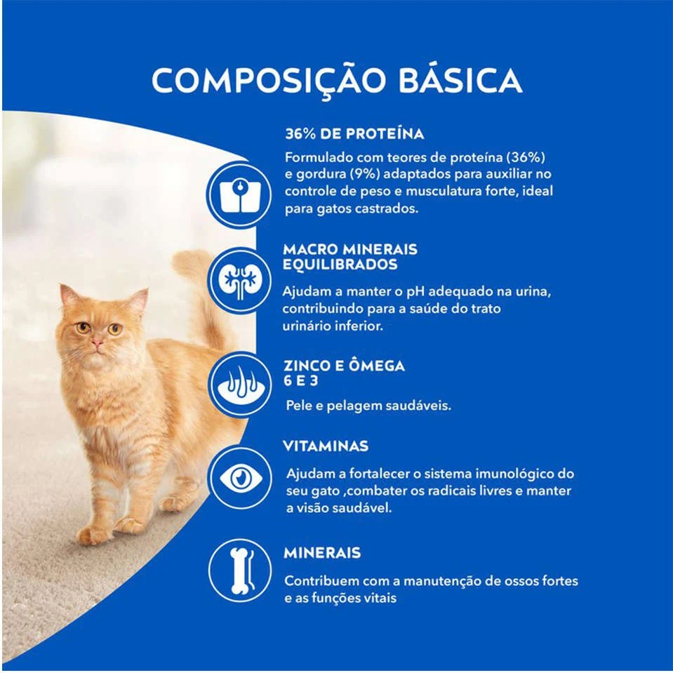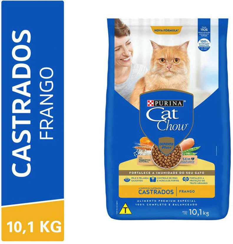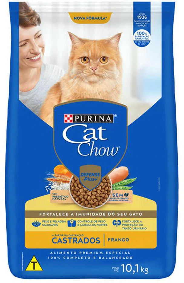 A Ração Nestlé Purina Cat Chow para Gatos Castrados, com Defense Plus você vai oferecer uma alimentação adequada e balanceada, com nutrientes que seu gato necessita após a castração, auxiliando na manutenção da sua saúde por toda a vida. Contém altos níveis de proteína para ajudar a manter a massa magra.
