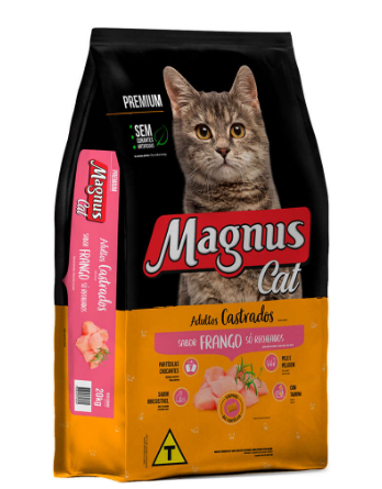 A Ração Seca Magnus Cat Frango para Gatos Adultos Castrados é nutritiva e saborosa, agradando o paladar dos gatos e trazendo benefícios para a saúde deles. O BIO COMPLEX é um exclusivo conjunto de ingredientes que ajuda na saúde geral do gato. Além disso, essa ração é composta de ingredientes de alta qualidade e auxilia na formação de fezes saudáveis com a combinação de prebióticos, fibras e extrato de yucca. A fórmula também inclui ômegas 3 e 6, biotina e zinco quelato, ajudando a manter a pele e pelagem do gato saudáveis e brilhantes. Além disso, a taurina presente na ração é um aminoácido essencial para a saúde do coração e da visão do seu melhor amigo.