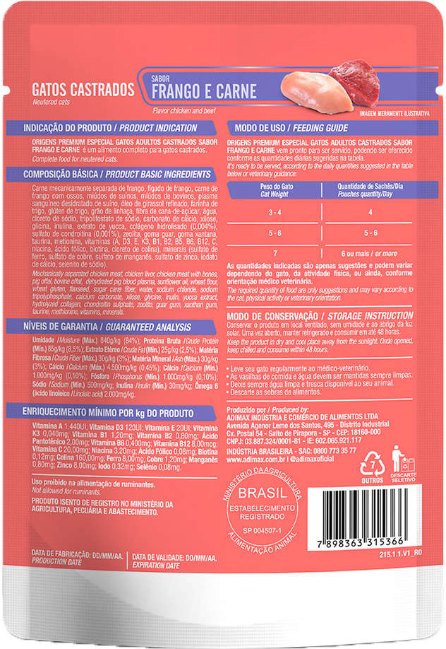 A Ração Úmida Origens Frango e Carne para Gatos Castrados é a escolha ideal para tutores que buscam oferecer uma alimentação completa e balanceada. Desenvolvida com cuidado e expertise para atender às necessidades específicas após a castração, proporcionando uma dieta equilibrada e nutritiva. Elaborada com ingredientes criteriosamente selecionados, como carnes frescas e vegetais de alta qualidade, esta opção oferece um sabor irresistível que os bichanos adoram. Além disso, a presença de nutrientes essenciais garante um ótimo aproveitamento dos alimentos, contribuindo para a saúde e o bem-estar. Cada sachê é cuidadosamente preparado para garantir a frescura e a segurança alimentar, proporcionando uma experiência gastronômica de alto nível.